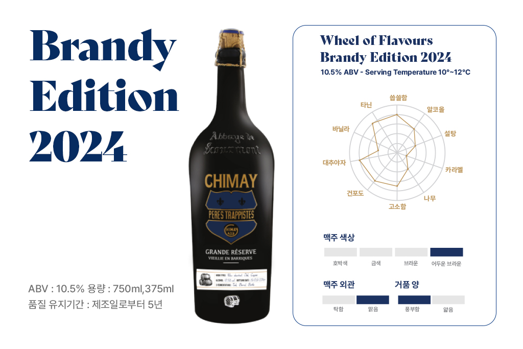시메이 그랑 리저브 배럴은 추가적인 발효와 배럴 숙성(약 6개 월)을 통해 알코올 도수가 조금 더 높아지며(블루 9%, 배럴 숙성 10.5%),빈티지마다 변화하는 독특한 풍미를 제공합니다. 특별한 순간을 기념하기 위한 완벽한 맥주입니다.