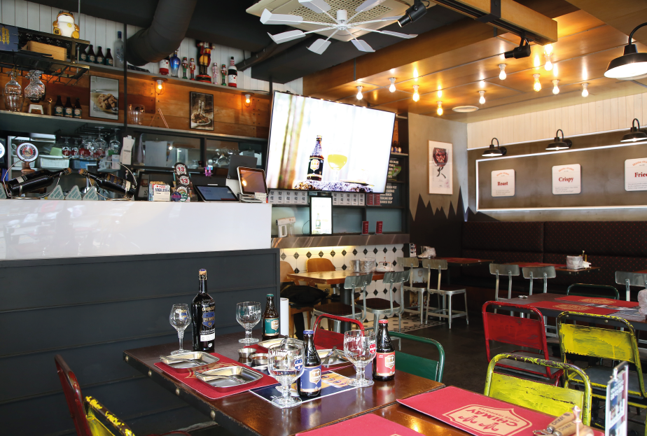 안산신길점은 일반 치킨집이라기보다 벨기에의 카페 바에 온 듯한 느낌을 줍니다. 훌륭한 음식과 맥주를 즐기기에 좋은 분위기를 갖추고 있으며, 여름에는 야외 좌석에서 신선한 공기를 마시며 한 잔을 즐기기에도 좋습니다. 사장님께서 “다양한 공간, 고급스러운 분위기, 단체 모임하기”라고 말씀하셨듯이, 이곳은 확실히 그런 분위기를 만들어내는 데 성공했습니다.