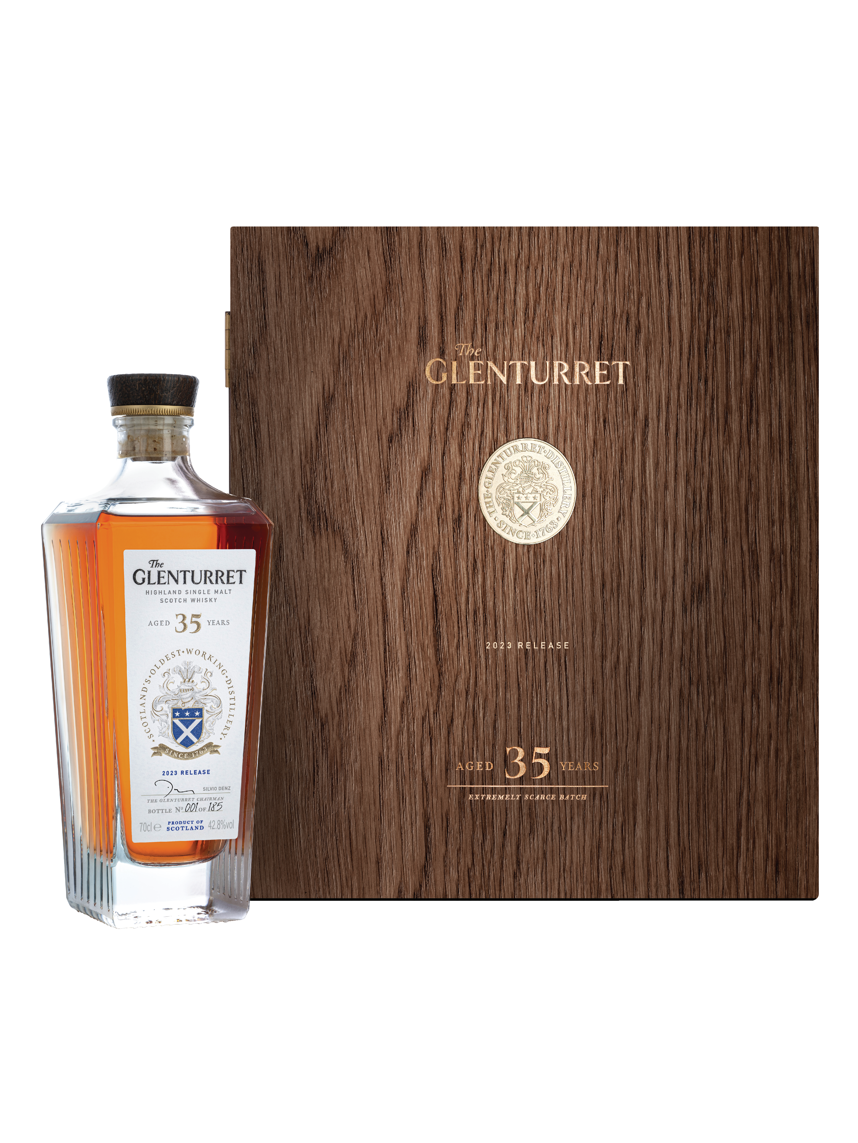 더 글렌터렛 위스키 메이커 밥 달가노가 신중하게 선정한 단 1개의 특별한 캐스크를 사용하여 만들었습니다. 이 놀랍도록 희귀한 더 글렌터렛 35년 싱글 몰트 위스키는 싱글 캐스크 위스키로 현재(12월 2024년 기준)까지 단 한번 출시 되었습니다. 독특하고 복합적인 맛을 가진 유러피안 오크 올로로소 셰리 캐스크 한개로 만들었습니다. 싱글 캐스크 릴리즈는 한개의 유러피안 오크로 만들었지만, 아메리칸 오크 셰리 캐스크의 특징도 지니고 있습니다.